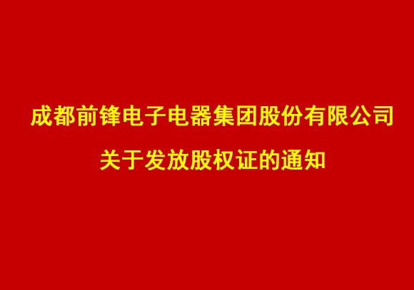 成都前鋒電子電器集團股份有限公司關于發放股權證的通知