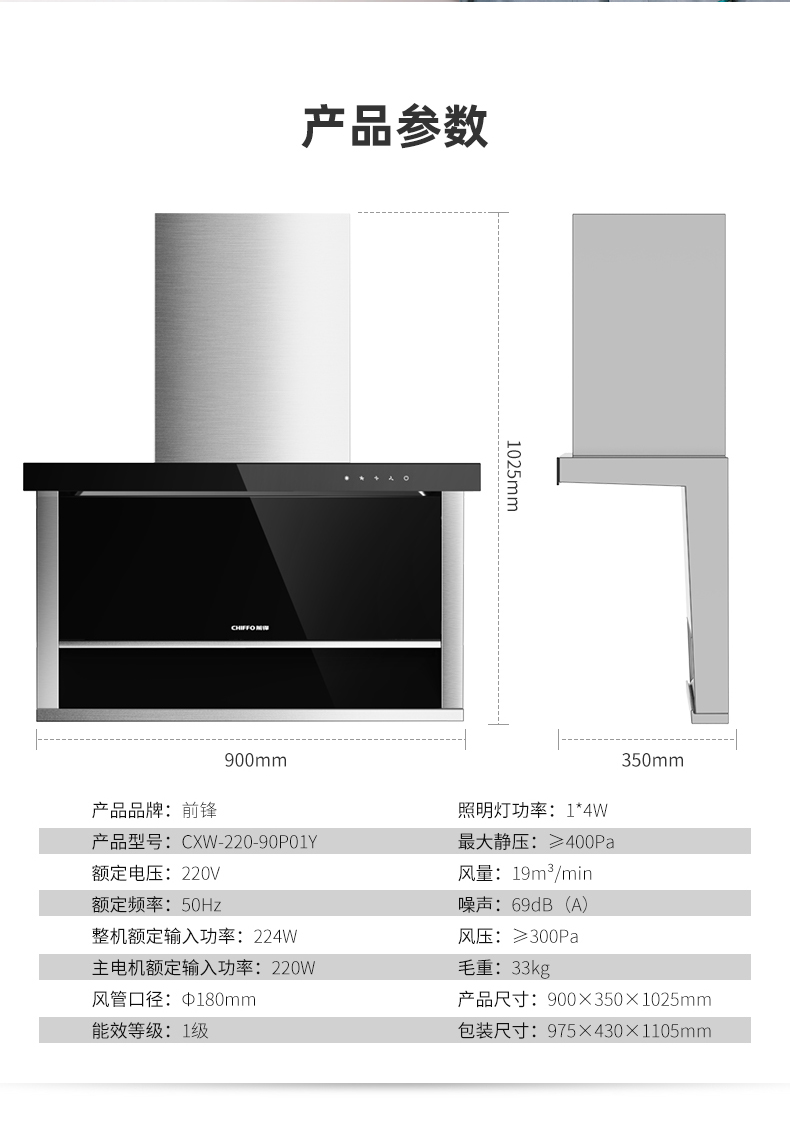 前鋒平板雙吸油煙機(jī)90P01Y