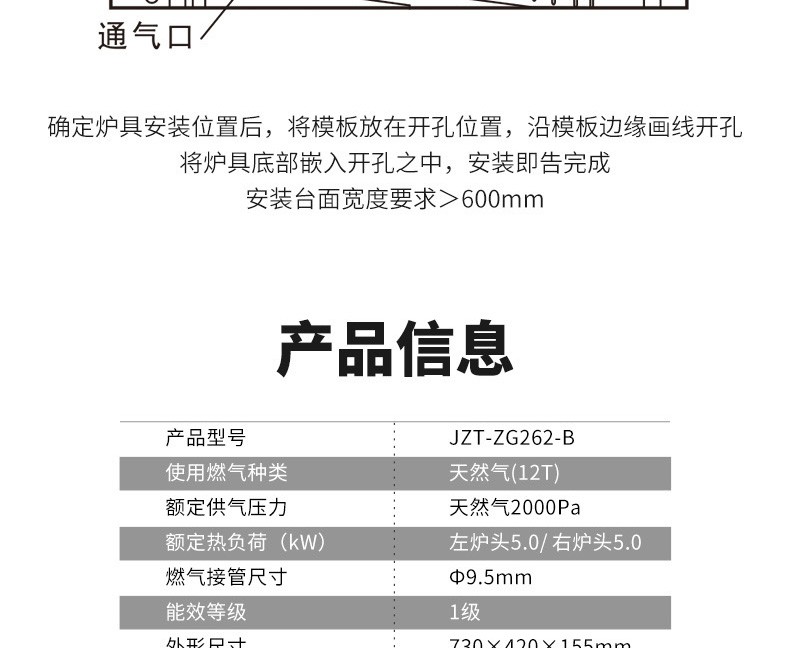 前鋒嵌入式灶具ZG262-B