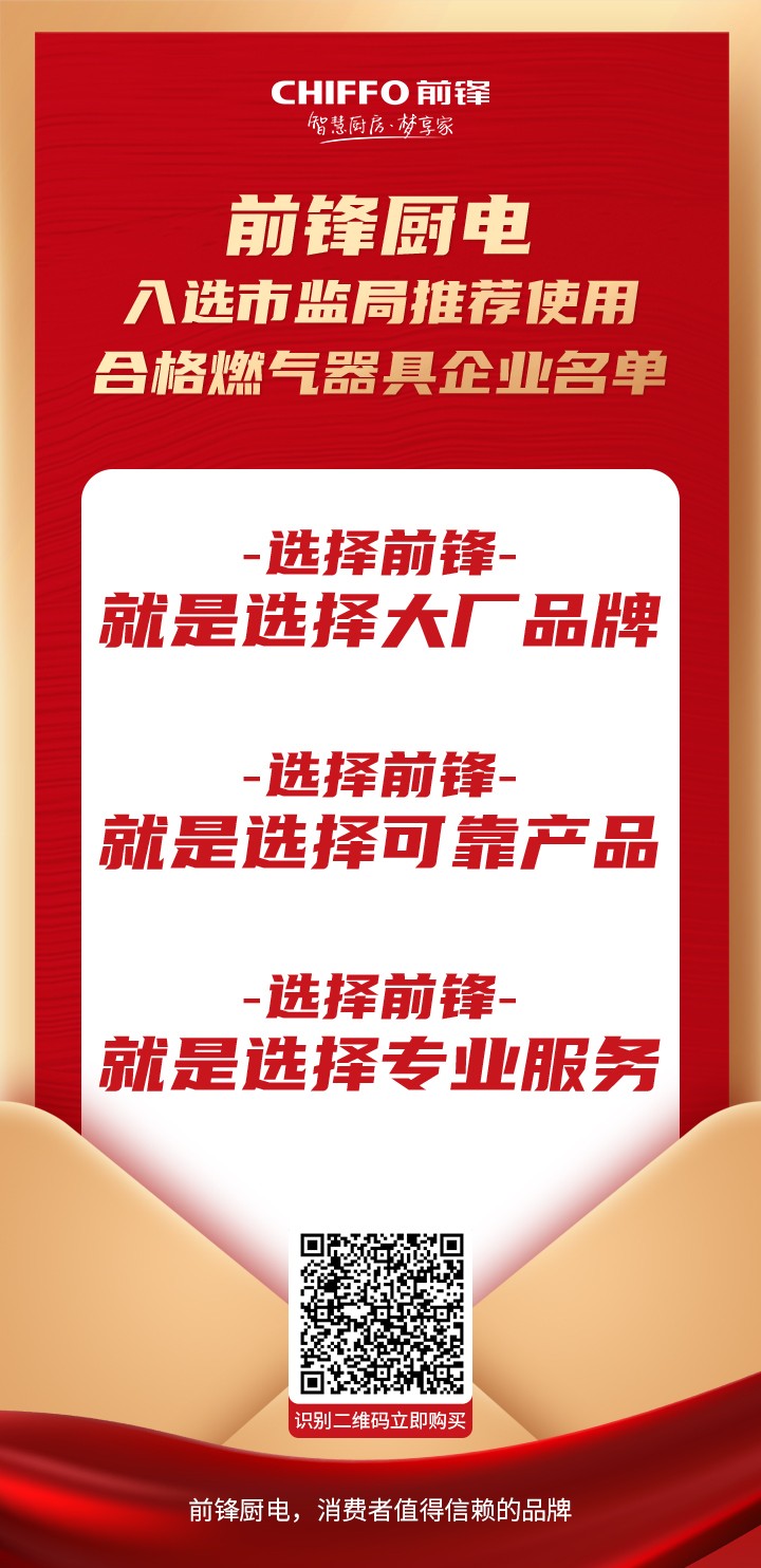 2022年3月,成都市市場監督管理局公布了《關于推薦使用合格燃氣器具企業名單》,前鋒廚電憑借先進的技術和安全可靠的產品品質,入選市監局推薦使用的合格燃氣器具企業。