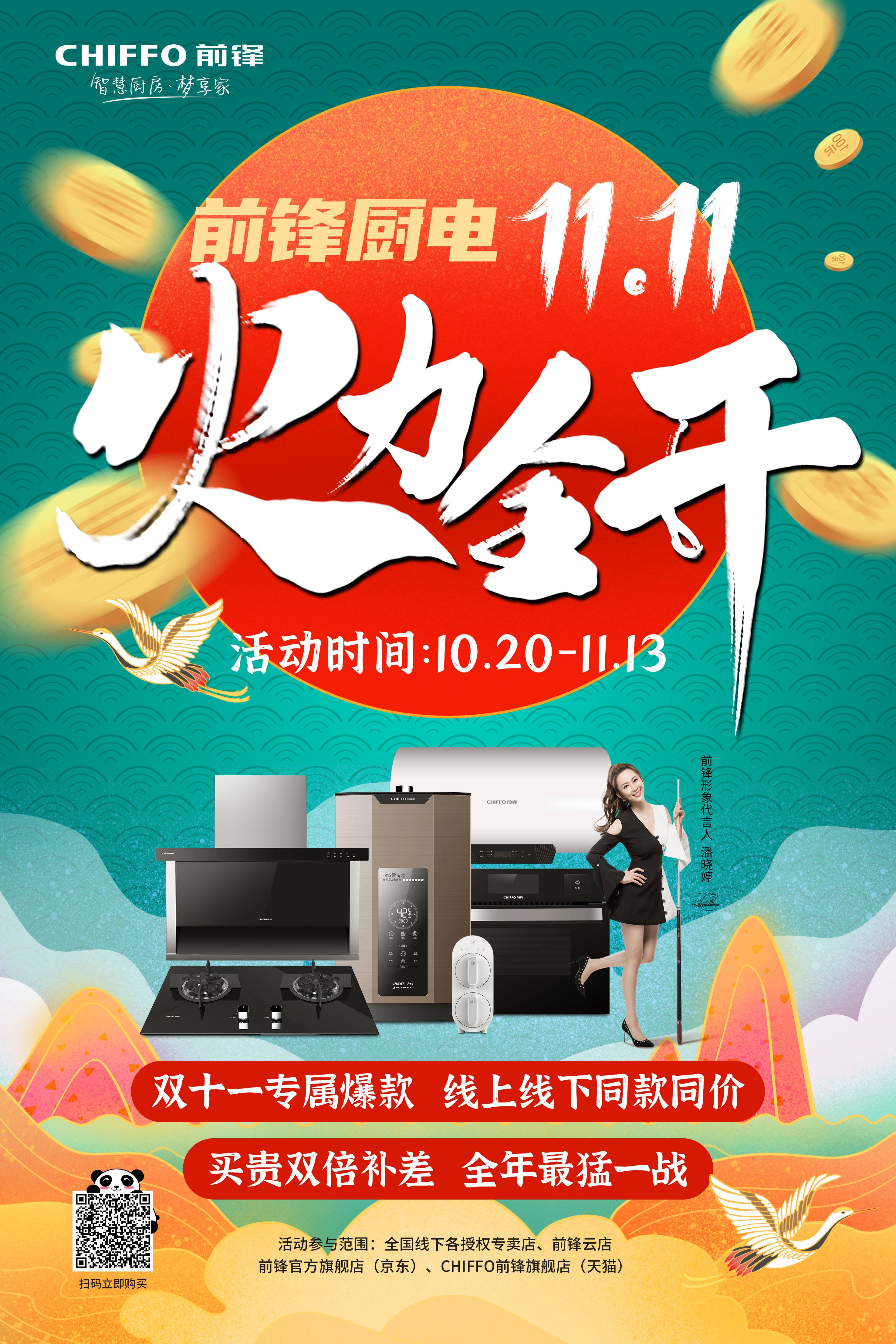 10月20日—11月13日,前鋒廚電火力全開,全國千店同時引爆,線上線下同步開啟。這場廚電“鋒暴”,勢必引爆雙11最強廚電主賣場!